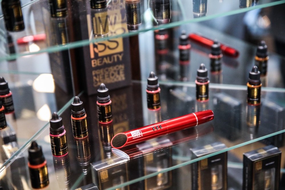 Kennenlernphase mit PMU Lipstick Pigmentierung, Pigmente und Geräte.